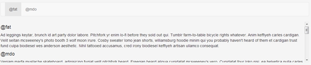 </div>The navigation is created using a ul element with the class “nav-tabs” while the additional class nav is used to apply the navigation CSS style. Each li element is composed of an internal link that should define the attribute data-toggle as “tab”. This triggers Bootstrap’s Tabs JavaScript and the respective tab area is displayed. Coming to the tabs area, it consists of a set of div elements. The parent div should have a class as tab-content and the child divs should have a class tab-pane. Each tab-pane must have an id corresponding to the internal links defined in the tabs navigation. In the above example, I have set a class of the first tab-pane as active. This makes it visible by default.