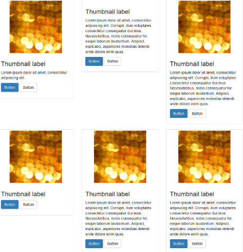 Each grid item inside the tab panels is built with the Bootstrap grid system and the Bootstrap Thumbnails component. Here’s a code snippet to illustrate its structure: